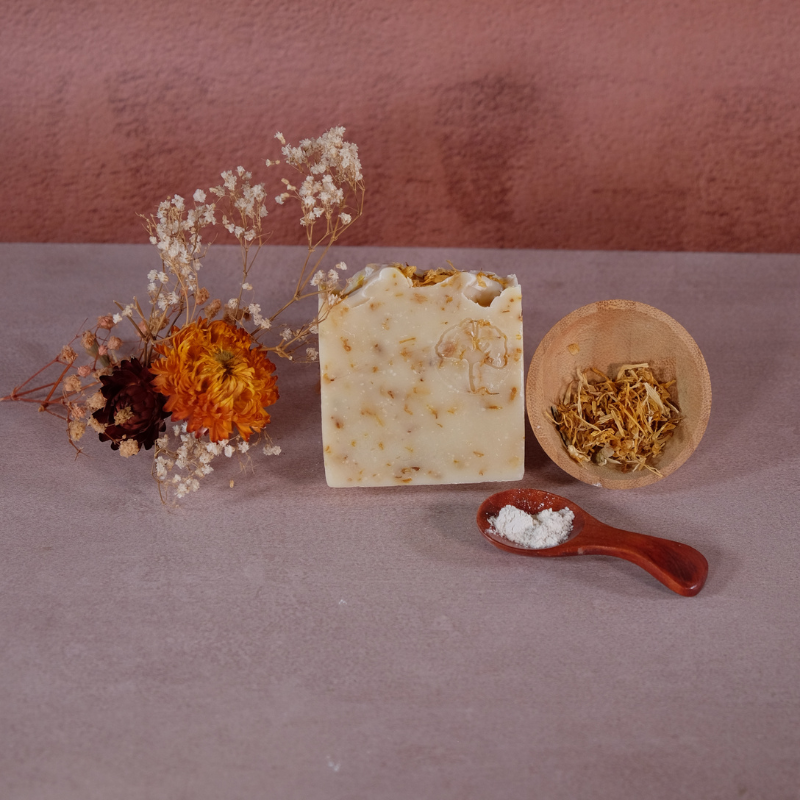 – Du Calendula, reconnu pour ses vertus calmantes et réparatrices,